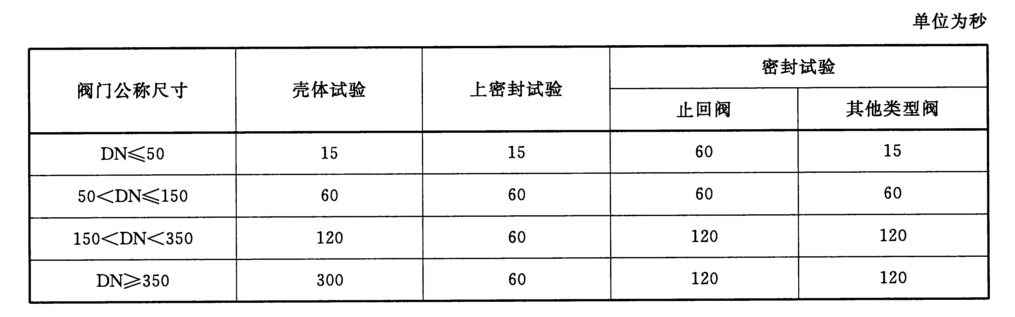 封閉一端,關(guān)閉閥門的啟閉件,在封閉端充滿試驗(yàn)介質(zhì),逐漸加壓到規(guī)定的試驗(yàn)壓力,按表2的規(guī)定保持試驗(yàn)壓力,檢測(cè)另--端的泄漏量。