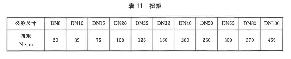 要求: 閥門應(yīng)能承受的扭矩按表11的規(guī)定,按規(guī)定進行抗扭性能試驗后,應(yīng)無破損、變形,且殼體強度和.密封性能應(yīng)符合規(guī)定。