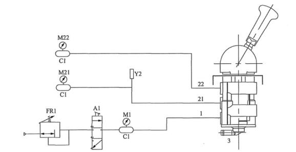 a)將樣品手柄置于行車位置??刂崎yA1置于充氣位置,從樣品進氣口充氣至P,然后將控制閥A1置于截斷位置,穩(wěn)定1min后,記錄此后5min內壓力表M21、M22的壓力降。b)將樣品手柄置于檢查位置??刂艫1置于充氣位置,從樣品進氣口充氣至P。然后將控制A1置于截斷位置,穩(wěn)定1min后,記錄此后5min內壓力表M1、M22的壓力降。