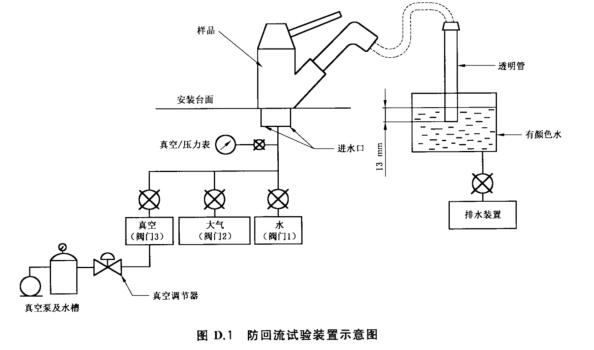 1.2樣品 根據(jù)制造商的安裝說(shuō)明書按圖D.1的要求將其安裝在正常的工作位置,進(jìn)水端連接供水裝置.真空系統(tǒng)和大氣。