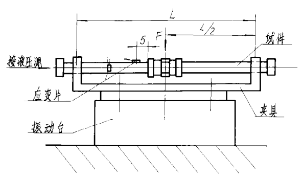 試驗(yàn)設(shè)備:彎曲試驗(yàn)裝置應(yīng)如下圖所示,包括一個振動臺,一套能使時間實(shí)現(xiàn)簡支的夾具,一套給試件充壓并能在試驗(yàn)中保持靜態(tài)工作壓力的液壓系統(tǒng)。